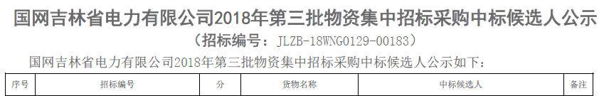 熱烈祝賀我司在吉林省電力有限公司2018年第三批物資集中招標(biāo)采購中標(biāo)
