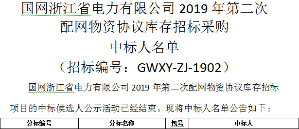 熱烈祝賀我司在國網浙江省電力有限公司2019年第二次配網物資協議庫存招標采購中標