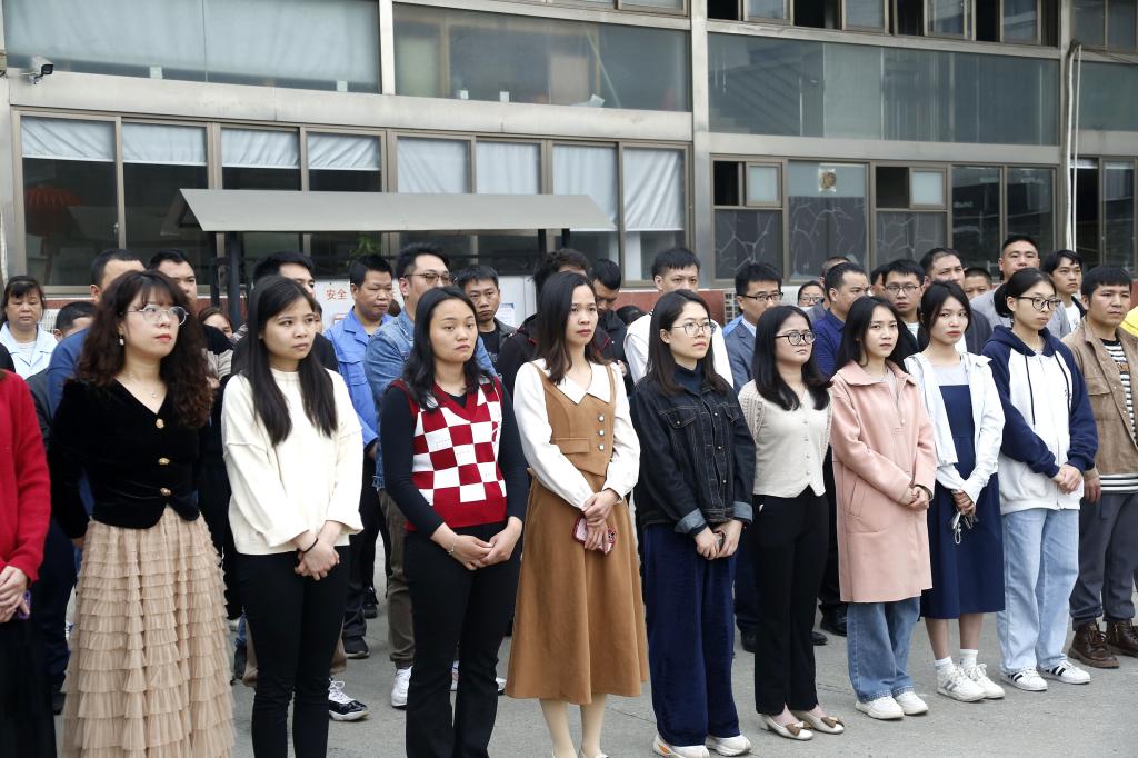 上午九時,全體員工集合于公司門口大廣場,聆聽領導的開年致辭。