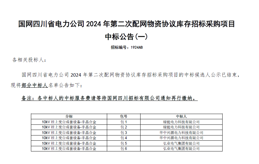 【中標(biāo)喜訊】熱烈祝賀我司中標(biāo)國網(wǎng)四川省電力公司2024年第二次配網(wǎng)物資協(xié)議庫存招標(biāo)采購項(xiàng)目