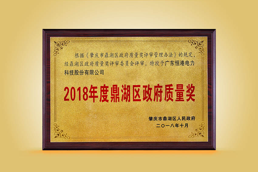2018年度鼎湖區政府質量獎牌匾