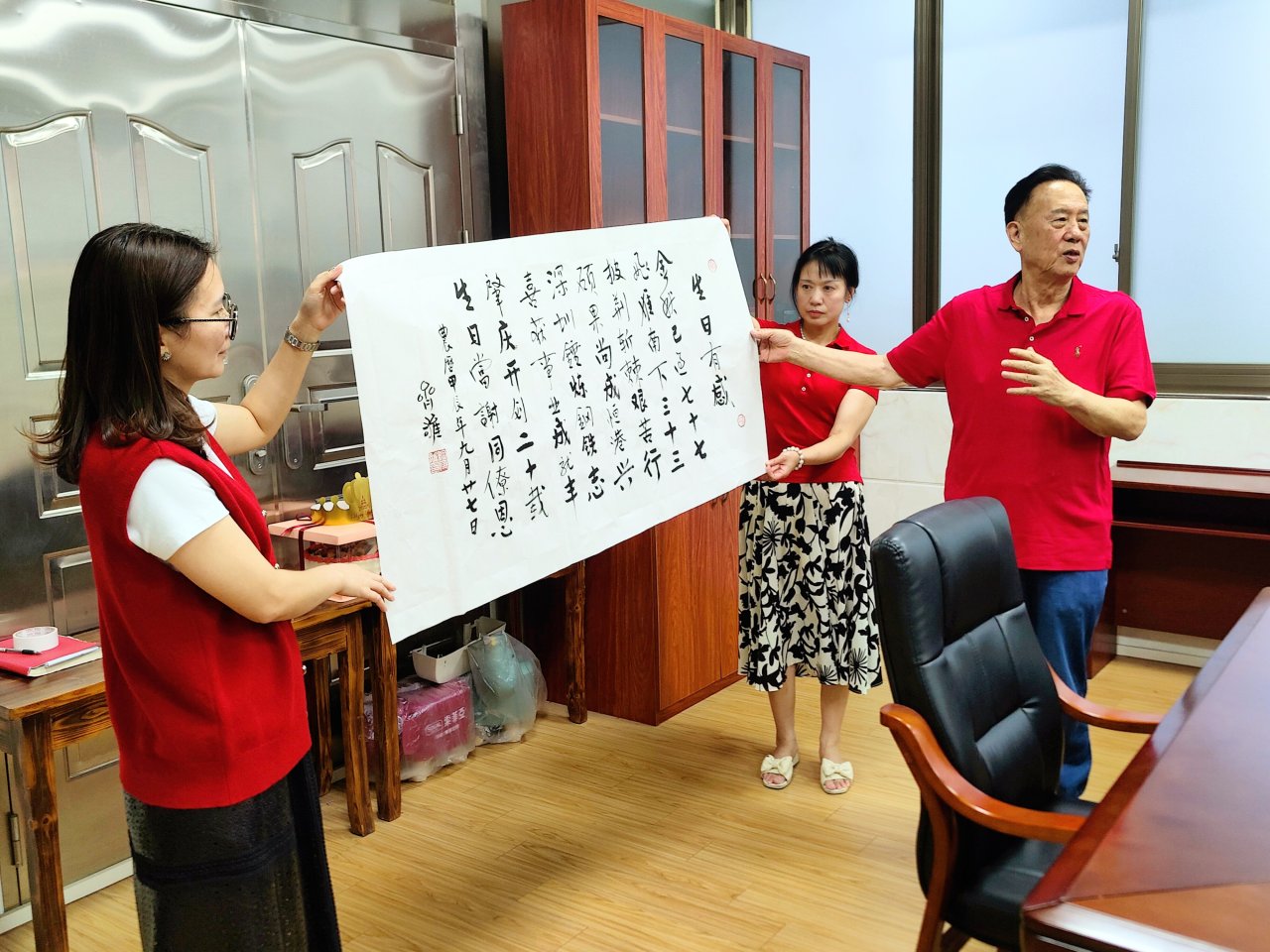活動現(xiàn)場被精心裝點,五彩的氣球與絢麗的彩帶交相輝映,營造出濃郁的喜慶氛圍。美麗的生日蛋糕宛如一件精美的藝術(shù)品,蘊含著對董事長深深的敬意與祝福。蛋糕上精心雕琢的圖案,象征著公司一路走來的輝煌成就,也預(yù)示著未來的光明前景。